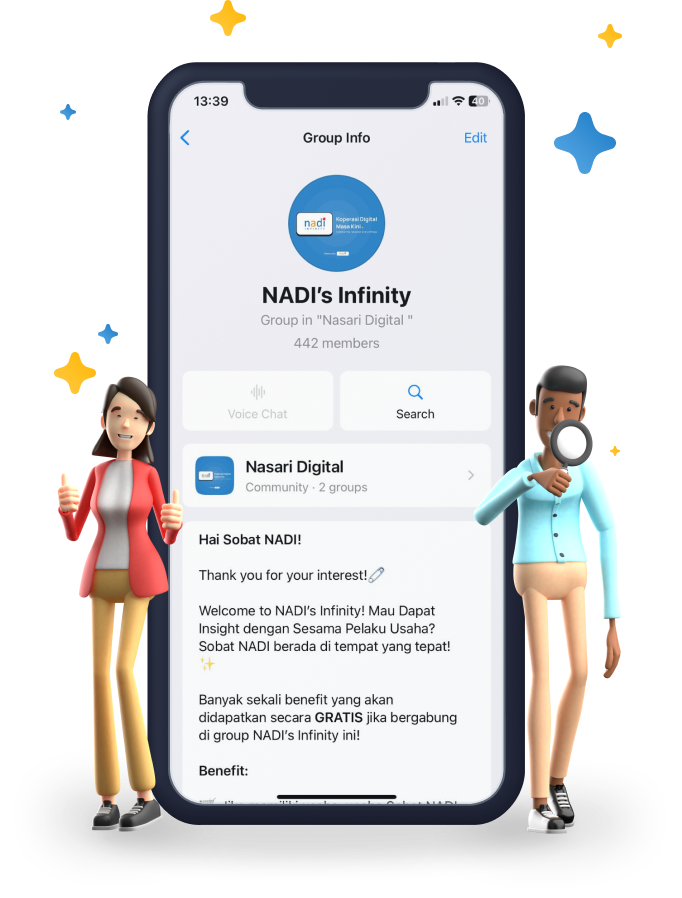 NADI's Infinity adalah tempat berkumpulnya orang-orang hebat untuk bisa menjadi wadah saling sharing satu sama lain seputar usaha, produk, keuangan & topik menarik lainnya!